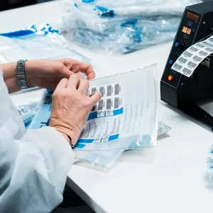 Afhankelijk van het product kunnen verschillende verpakkingsvormen worden toegepast, zoals barrière-pouches, blisters of andere medische verpakkingen. Producten worden in de cleanroom samengesteld, gelabeld en gecodeerd voordat ze verder in de keten worden verwerkt. Voor specifieke assemblage stappen kunnen wij eigen productielijnen ontwikkelen. Hiermee worden onderdelen efficiënt en foutloos samengevoegd onder gecontroleerde omstandigheden.
